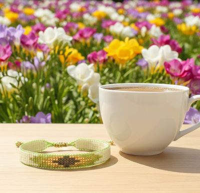 Zamówiłam bransoletke i dobrałam pierścionek i ładnie się komponują. Fajnie, że bransoletka ma makramowe zapięcie. Wysyłka bardzo szybko.